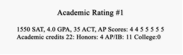 Academic Rating Systems: Many admissions offices assign an academic rating, typically on a scale (e.g., 1 to 5 or 1 to 9). A “1” might indicate near-perfect academics, including top grades in the most rigorous courses, and strong test scores. These ratings are often used during committee discussions to summarize an applicant’s academic profile quickly.