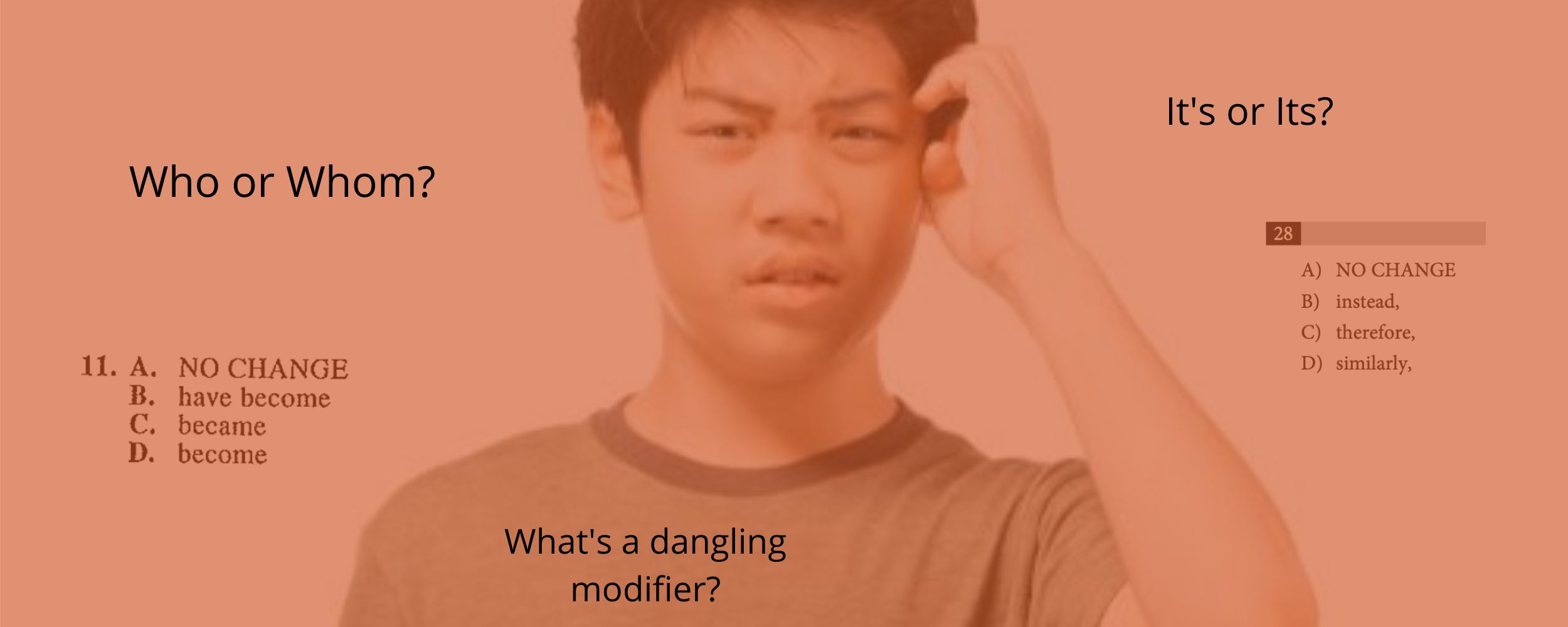 It’s striking how often I hear this from parents and students — even from kids who take Honors- and AP-level English classes. While the lack of feedback on writing mechanics or focused grammar instruction may make it seem like grammar doesn't matter, it definitely does. It's just that instead of getting graded on it directly, you're being judged on how grammar errors may affect the clarity or tone of your writing. However, on the ACT and SAT, you are, essentially, getting graded directly on your grammar and editing skills.